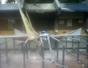 Akibat pembakaran tersebut, loket mengalami kerusakan cukup parah. Sebagian besar bangunan kecil tersebut kini berwarna hitam akibat hangus terbakar.